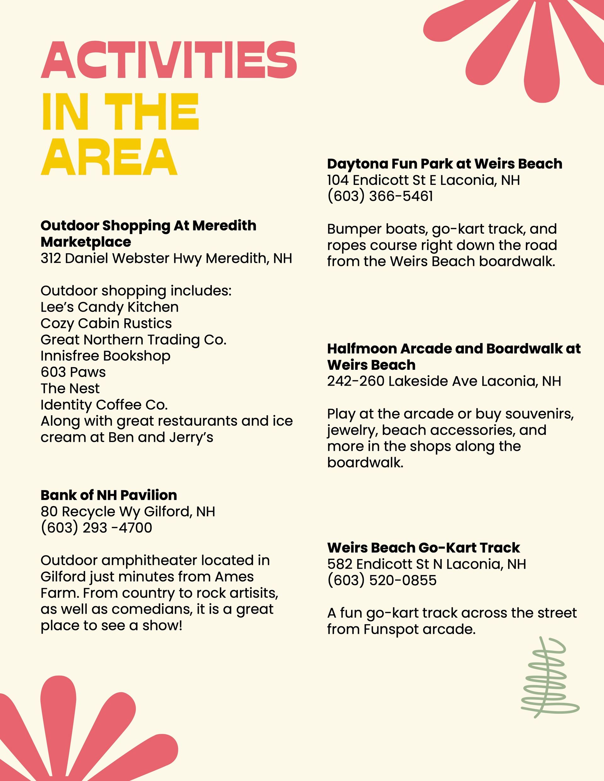 - Activities in the Area