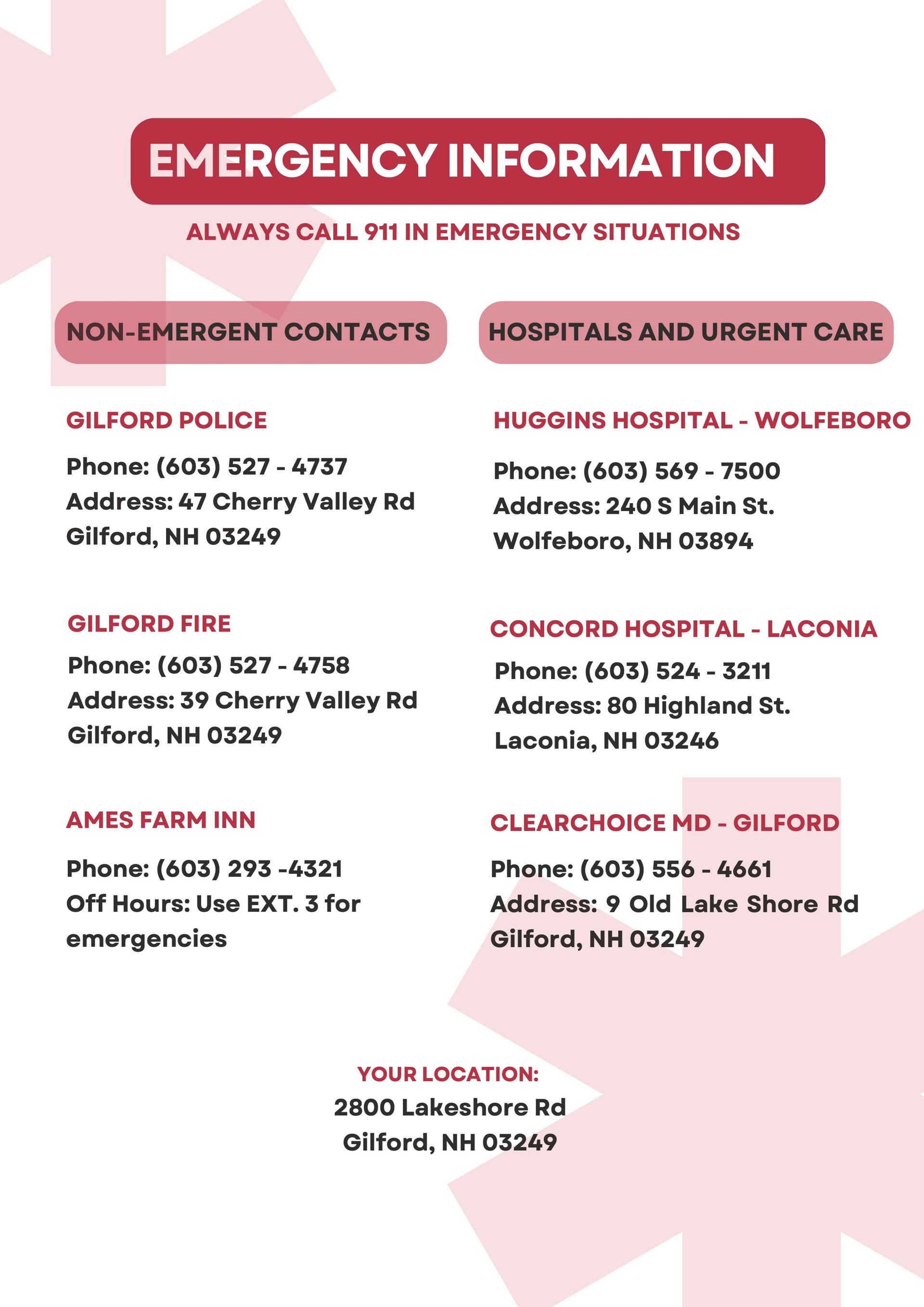 - Emergency Information