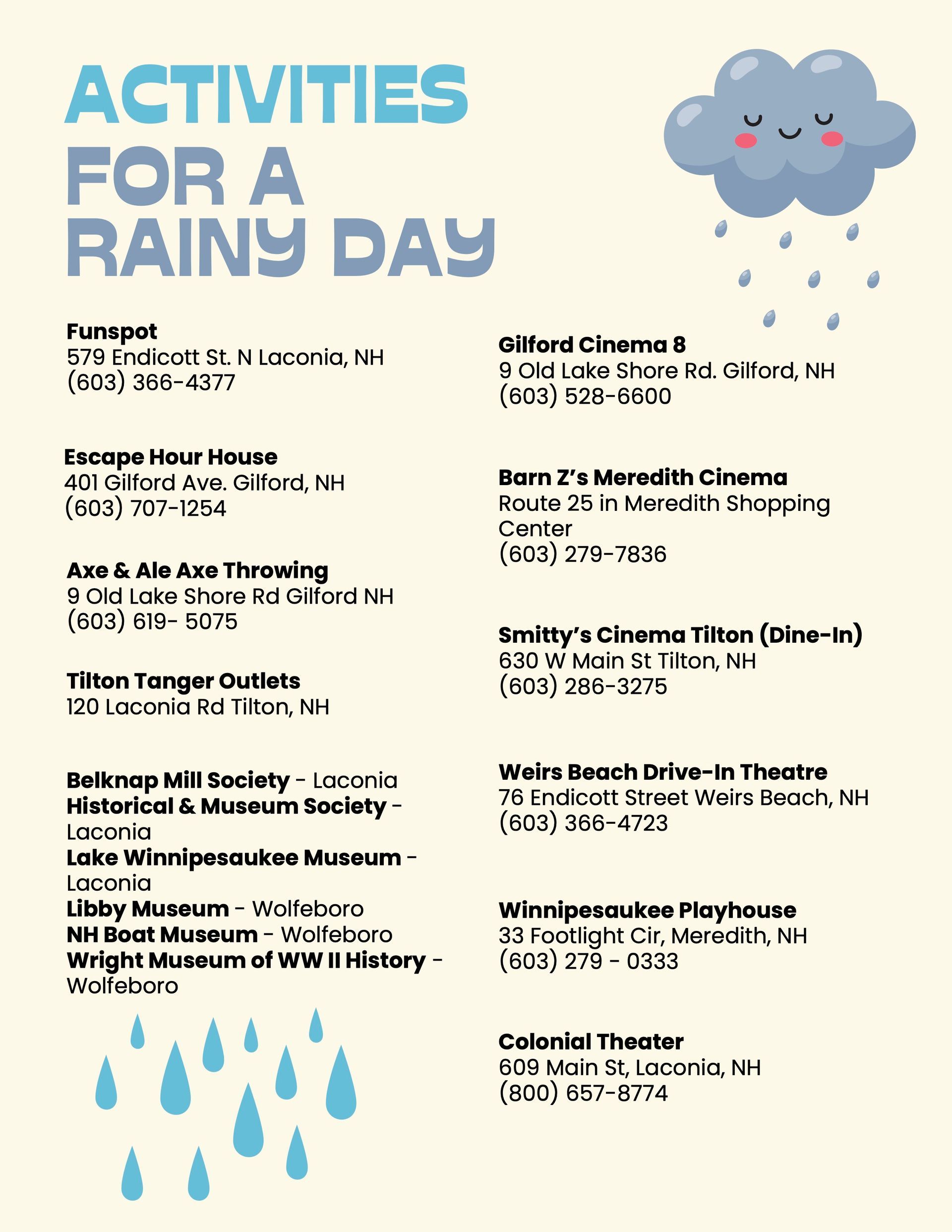 - Rainy Day Activities
